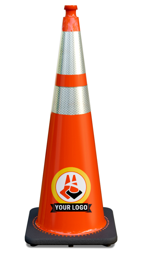 36" Orange Traffic Cone, w/6" & 4" 3M Reflective Collars w/Color Artwork