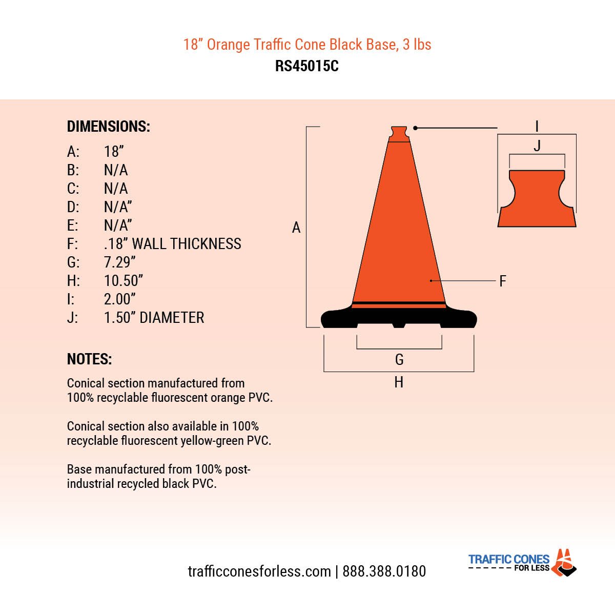 18" Orange Traffic Cone, 3 lb Black Base