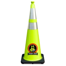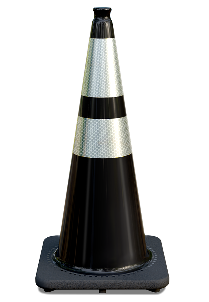 28" Black Traffic Cone, w/6" & 4" 3M Reflective Collars w/Color Artwork