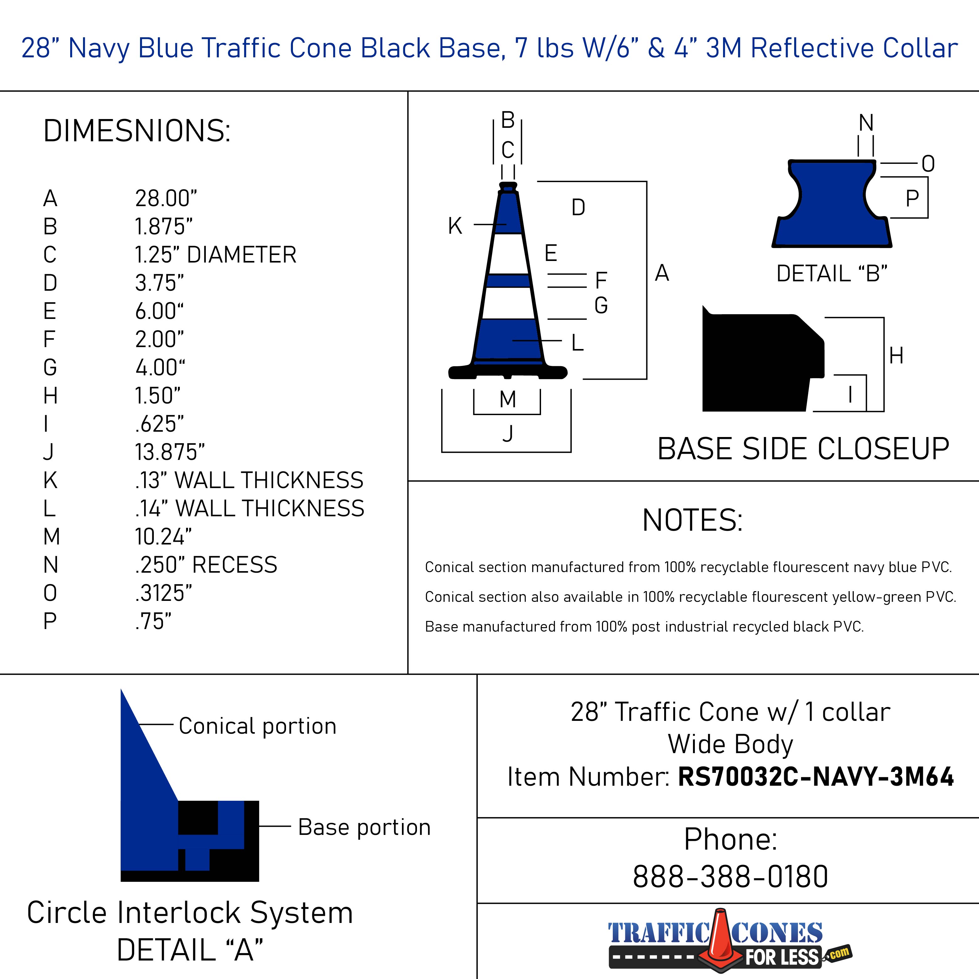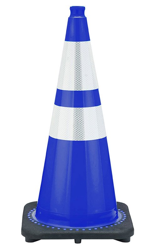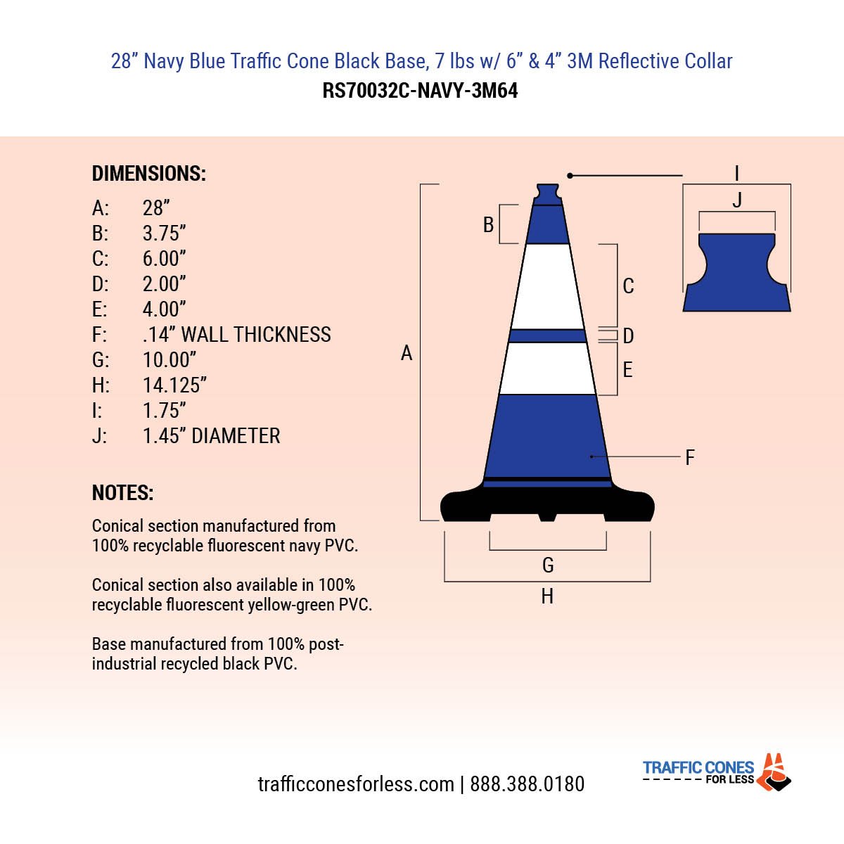 28" Navy Blue Traffic Cone, 7 lb Black Base, w/6" & 4" 3M Reflective Collar