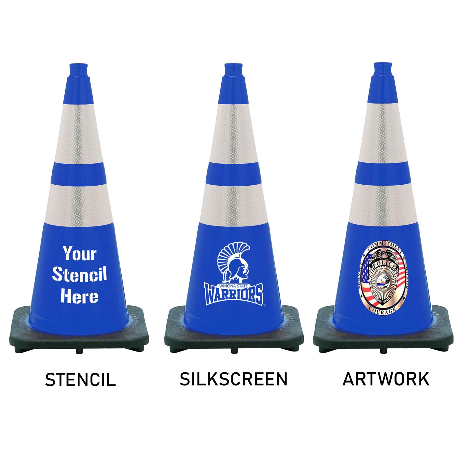 Please email your logo or stencil requirements to logo@trafficconesforless.com or use the upload feature above. Our customer service department will contact you with a proof for your approval.