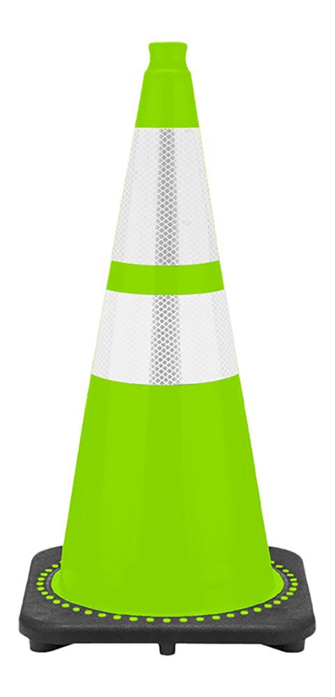 28" Lime Green Traffic Cone, 7 lb Black Base, w/6" & 4" 3M Reflective Collars