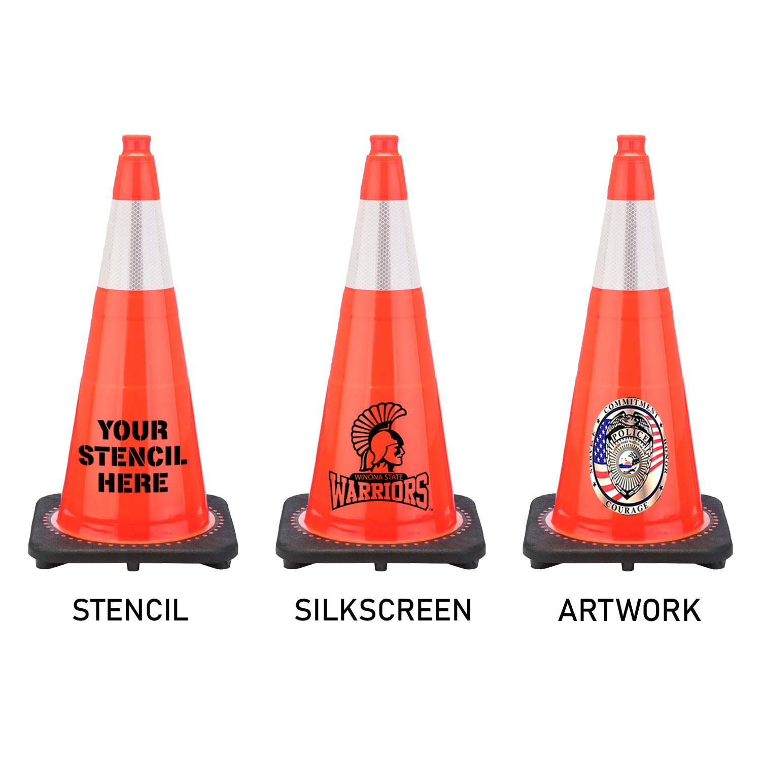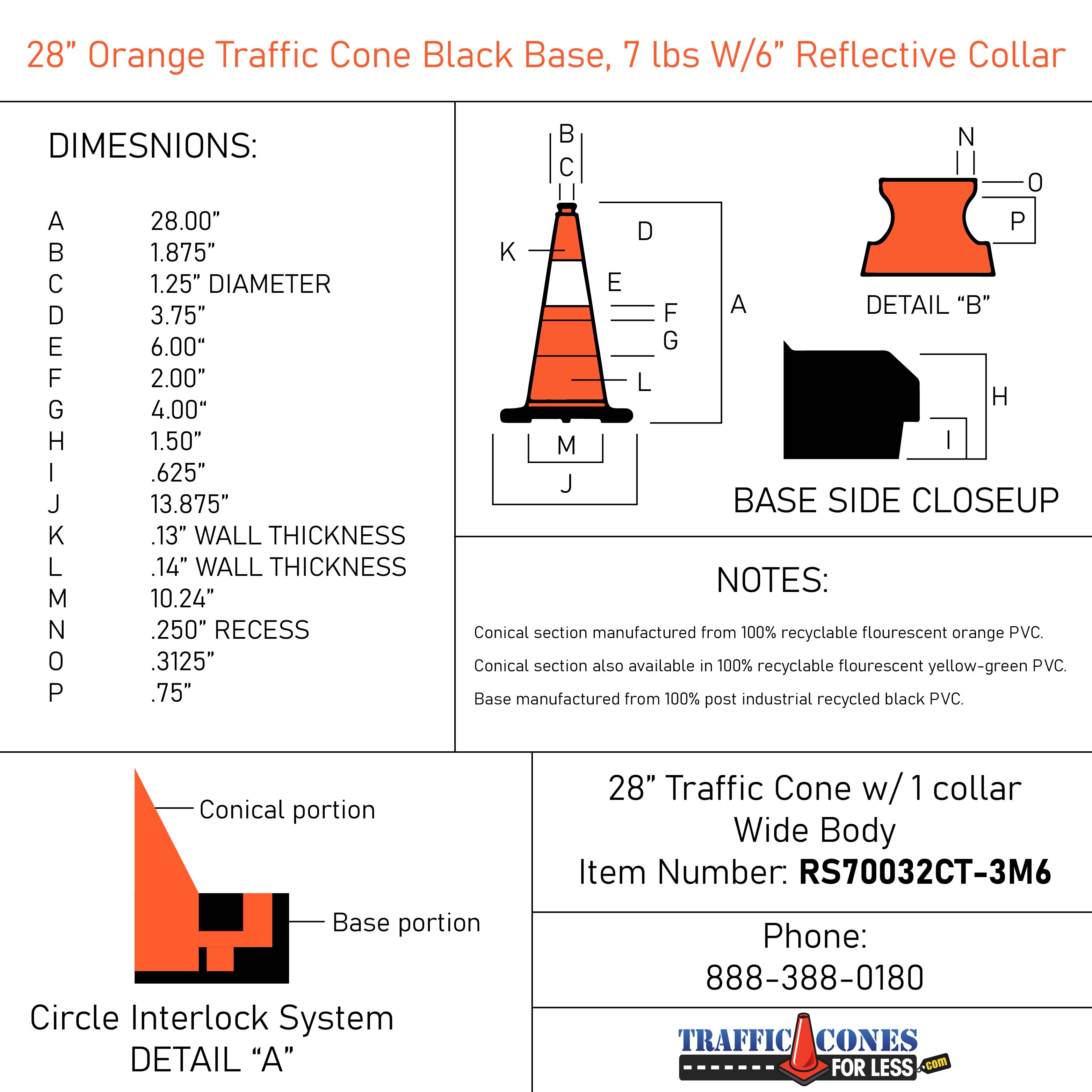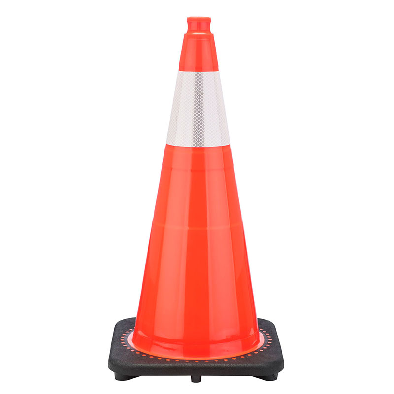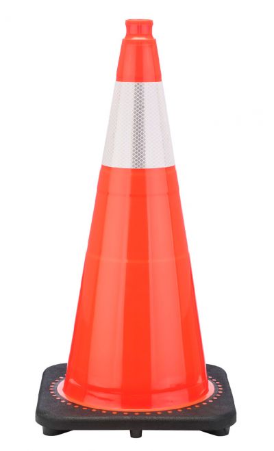 28" Orange Traffic Cone, 7 lb Black Base, w/6" Reflective Collar