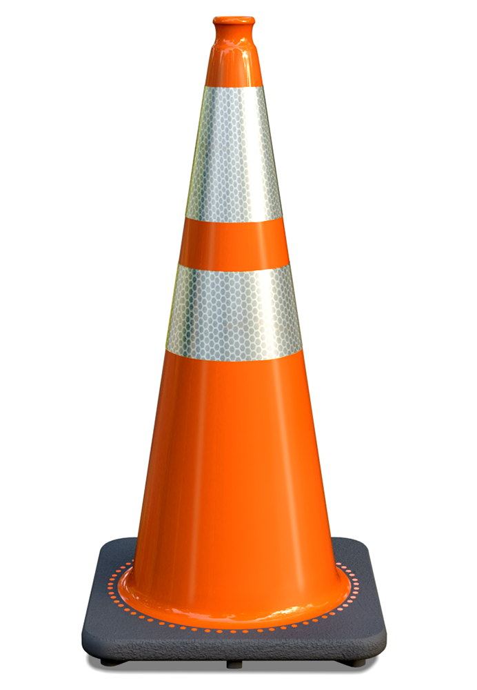 28" Orange Traffic Cone, w/6" & 4" 3M Reflective Collars w/Color Artwork