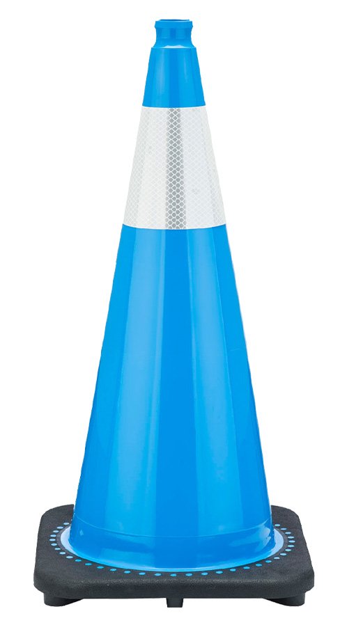28" Sky Blue Traffic Cone, 7 lb Black Base, w/6" Reflective Collar