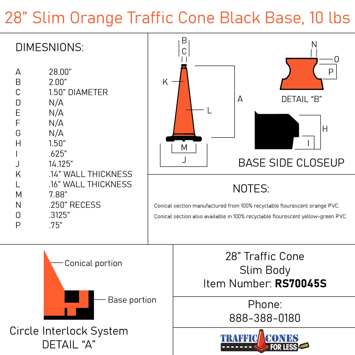 28" Slim Line Orange Traffic Cone, 10 lb Black Base