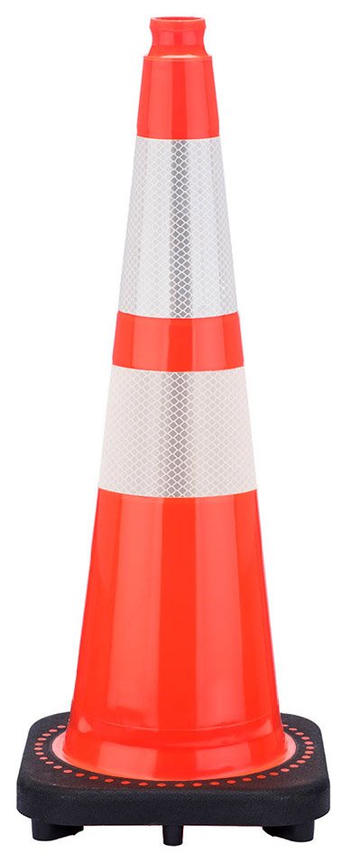 28" Slim Orange Traffic Cone, 5.5 lb Black Base, w/ 6" & 4" 3M Reflective Collar