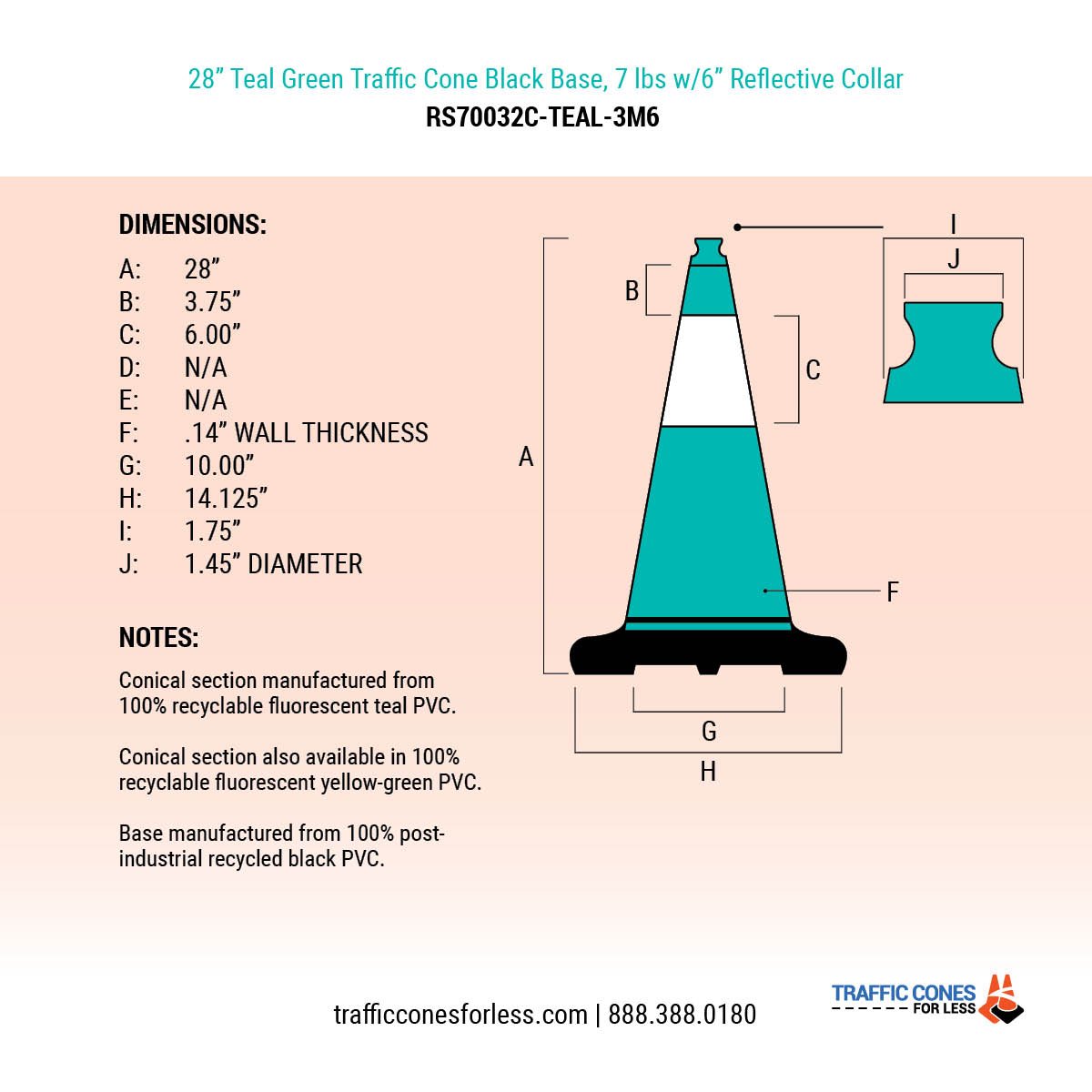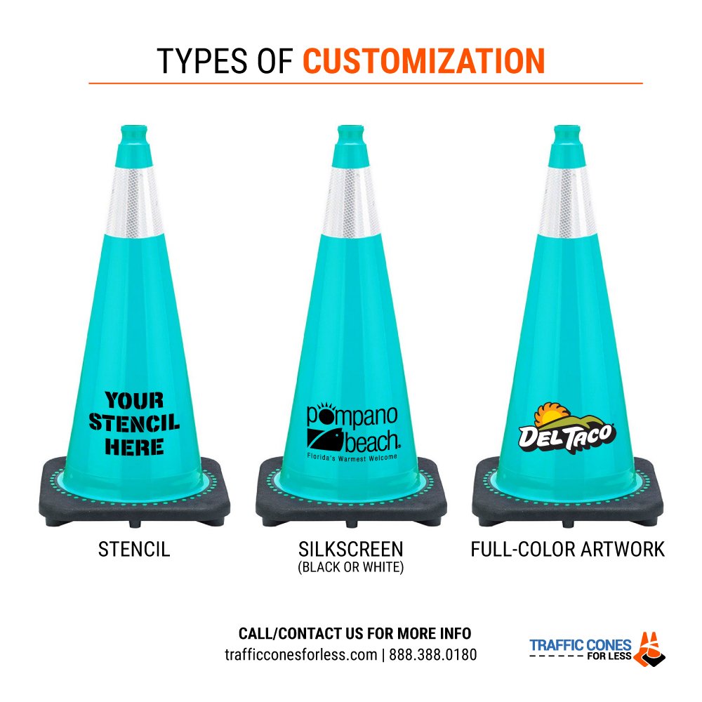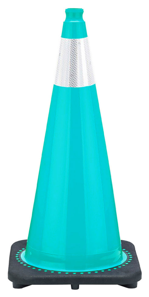 28" Turquoise Traffic Cone, 7 lb Black Base, w/6" Reflective Collar