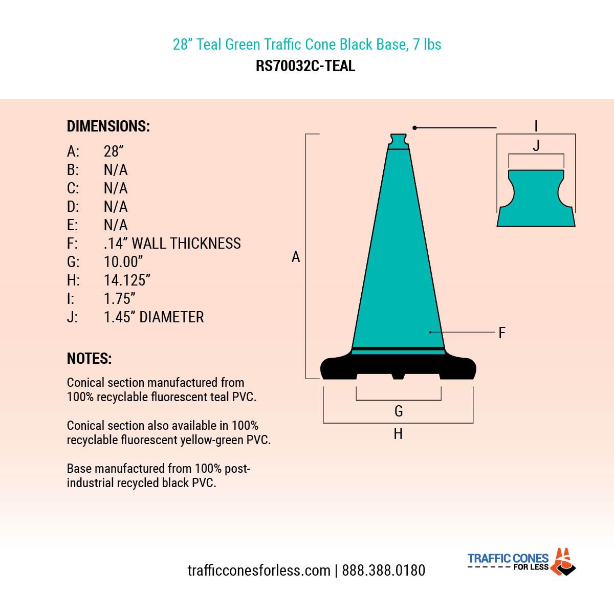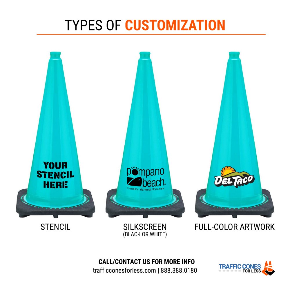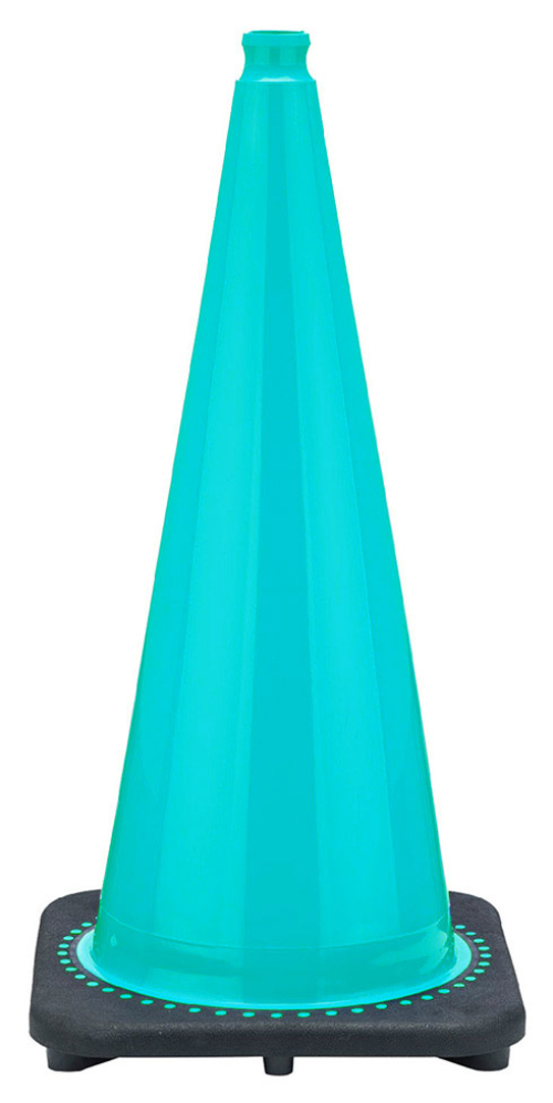 28" Turquoise Traffic Cone, 7 lb Black Base