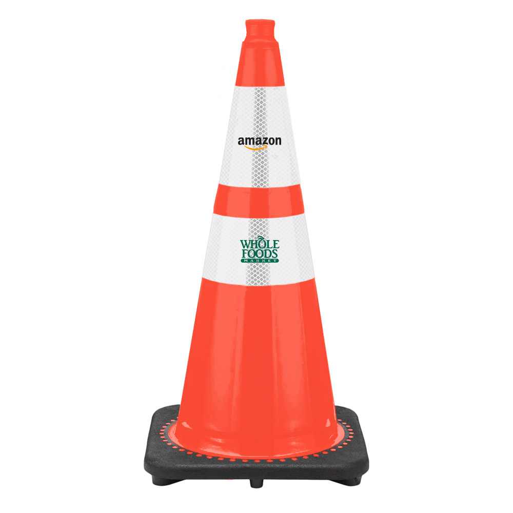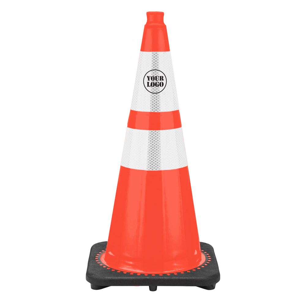 28" Traffic Cone w/6" & 4" Reflective Collars - Custom Logo