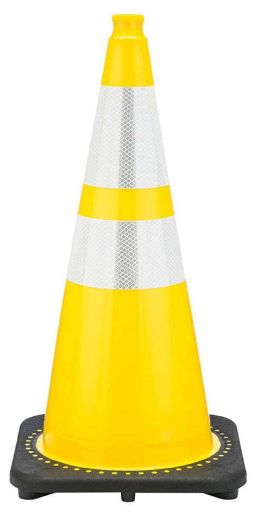 28" Yellow Traffic Cone, 7 lb Black Base, w/6" & 4" 3M Reflective Collar