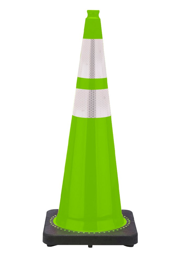 36" Lime Green Traffic Cone, 10 lb Base, w/6" & 4" 3M Reflective Collar