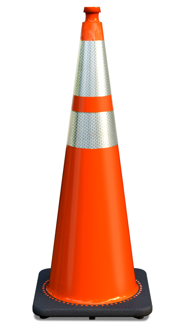 36" Orange Traffic Cone, w/6" & 4" 3M Reflective Collars w/Color Artwork