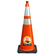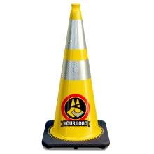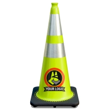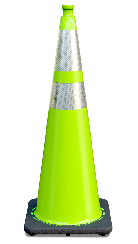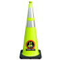 36" Lime Traffic Cone, w/6" & 4" 3M Reflective Collars w/Color Artwork