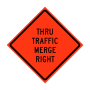 48" x 48" Roll Up Traffic Sign - Thru Traffic Merge Right