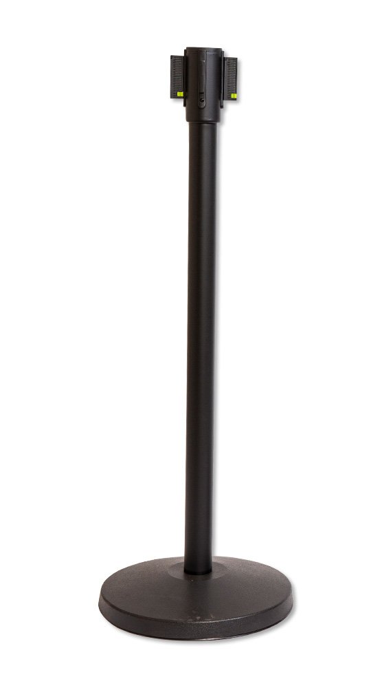 Lite Series Retractable Belt Stanchion - Black Finish, 11ft Belt