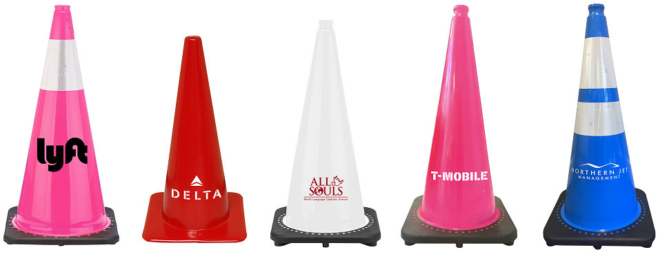 We revolutionize the use of Traffic Safety Cones by providing you the option to personalize your cones and distinguish your brand, like countless businesses that have come to us for their custom stencils, silkscreen and full color logo. Learn more about our graphic options and see how you too can stand out with your cones!