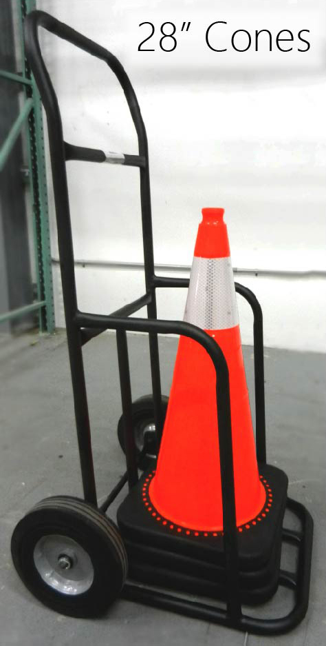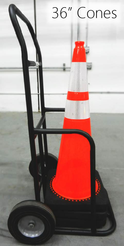 Portable Traffic Cone Carts. Heavy duty construction allows for carrying up to 500 lbs. The cart's easy roll design makes working around tight spaces a breeze and saves time. It also reduces the potential for injury. Cones can be mixed and matched for easy transport. The wheels are heavy duty, long wearing and maintenance free.