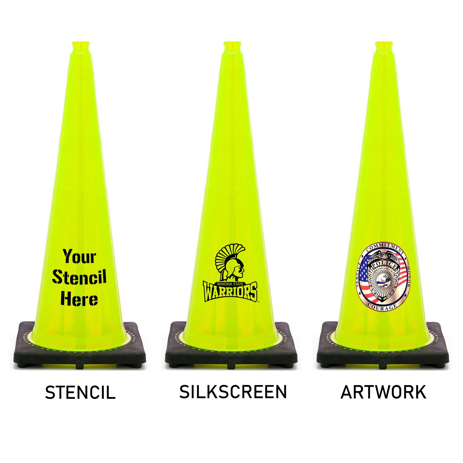 Del Taco 36" Lime Green Traffic Cone, 10 lb Black Base - Del Taco 4 pack
