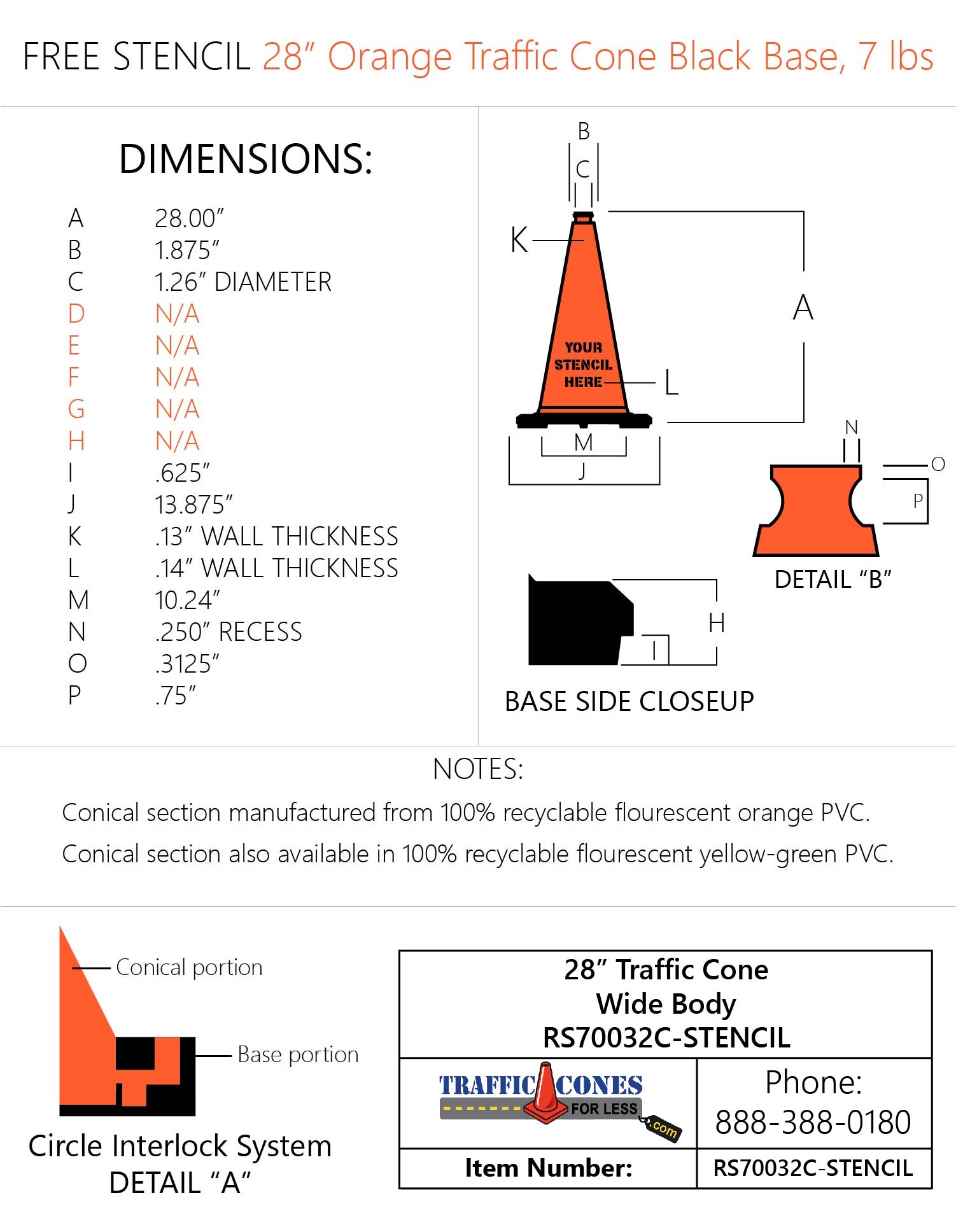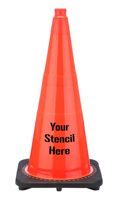 FREE STENCIL 28" Orange Traffic Cone, 7 lb Black Base