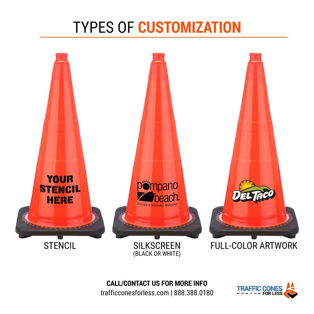Managing your parking lot just got a lot easier. With our pre-stenciled 28 inch traffic cone options, simply pick from one of our most commonly requested stencils to save time and money. No set up fees. No time lost designing. We’ve created this simple and efficient solution to help solve your traffic safety needs as quickly as possible.