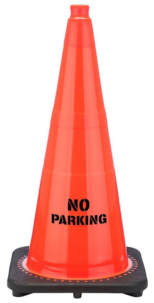28" No Parking STENCIL Traffic Cone, 7 lb Black Base
