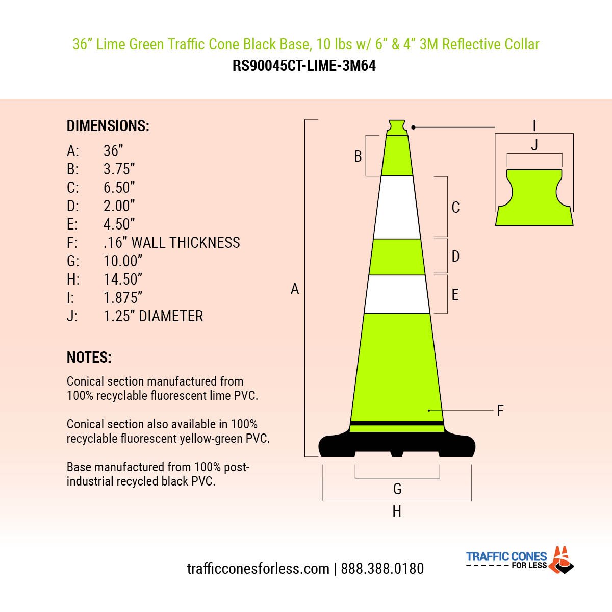 This exclusive pallet bundle of 450 pack JBC 36" Traffic Cone with black base is made with PVC for superior durability and superior flexibility. The heavy duty cone with 6" and 4" 3M reflective collar features a UV inhibitors to prevent fading and meets MUTCD standards and NCHRP-350 certified.