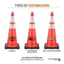 A silkscreen will allow you the most flexibility in fonts, styles, logos and designs to appear on your cones. Silkscreen set up fees is a one time charge of $125.00