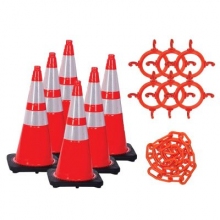 28" Traffic Cone, 7lb Base w/6" & 4" Reflective Collars Connector Chain KitRS70032CT3M64-BUNDLE