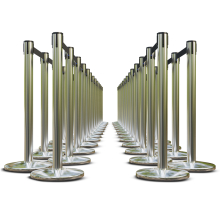 Stainless Finish Premium Stanchions w/Retractable Belt - 10 pack