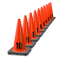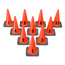 Sequentially Numbered 18" Orange Traffic Cones, 3 lb Black Base - 1-10