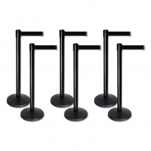 Lite Series Black Retractable Belt Stanchion - 6 Pack