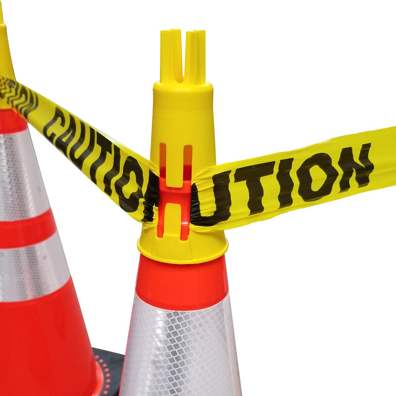 Our universal traffic cone adapter allow your cone to be a multi-use traffic control powerhouse. Simply slide the adapter over the top of the safety cone and you are now ready to use the cone to hold warning signs, lights, flags and barricade tapes.